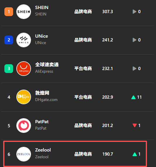 在此前Onesight发布的《出海品牌社媒影响力分析》榜单中,Zeelool一度排名第六,超越了当时风头正盛的Temu,与Cider、Cupshe等知名出海品牌。