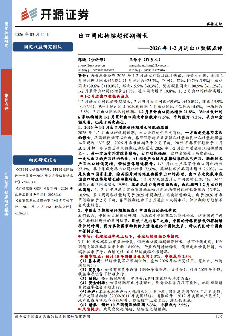 2026年1-2月进出口数据点评:出口同比持续超预期增长